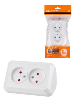 Подписаться на товар Розетка угловая двойная 2П открытой установки с з/ш IP20 250В 10А белая "Ладога" TDM